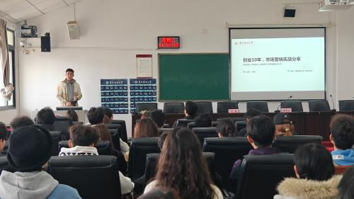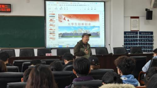 刘裕分享结束后,杨建春教授首先对其实战经验从市场营销角度进行专业解读,肯定了其在营销理论应用、品牌建设和企业协同发展方面的实践成果。随后,杨教授以《大学生创新创业》为题展开讲座,从创业思维启迪、项目获取、团队组建、盈利模式建构等基础环节切入,系统讲解创业必备素质。