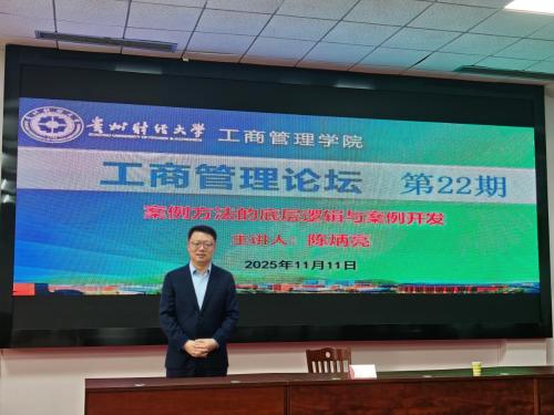 2025年11月11日,402cc永利官网举办第22期工商管理论坛,邀请中欧国际工商学院案例中心陈炳亮博士开展主题为“案例方法的底层逻辑与案例开发”的专题讲座。讲座由402cc永利官网副院长王健菊主持,402cc永利官网教职工参加。